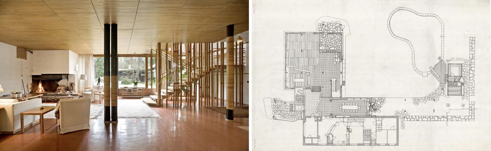 Met hun ‘landschappelijke’ architectuur hadden Scandinavische architecten als Aalto veel invloed op de na-oorlogse architectuur waarmee ik opgroeide – en daarmee is het verhaal weer terug bij mijn jeugd en Zuidhorn. Typisch voor die tijd zijn bv het ‘moderne’ huis van Gerrit Rietveld in Bergeijk of het meer ’traditionele’ van De Vlaming in Huizen. In deze bungalows zijn de verschillende functies als wonen, slapen en garage op één laag naast elkaar ‘uitgelegd’ en omsluiten in een haak een deel van de tuin.