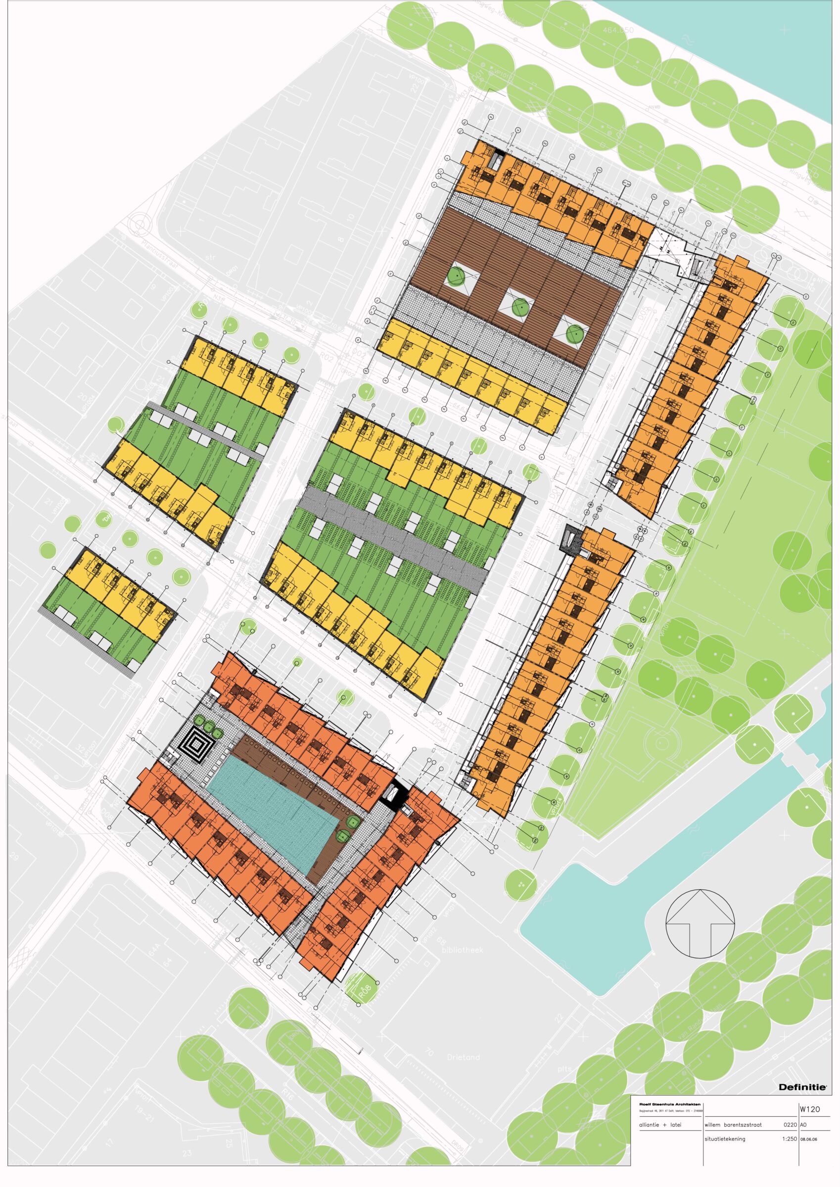 In Leidsche Rijn kreeg Quadrat opdracht voor het stedenbouwkundig plan voor Veldhuizen (1995), een wijk van ca 3400 woningen. In plaats van het werken van groot naar klein, de gebruikelijke werkwijze, wilde Stefan groot en klein tegelijk opwerken en vroeg ons de verkavelingen mee uit te werken tot op niveau van de woningplattegrond. Specifieke plekken in het plan, zoals de ligging aan water, aan een binnenstraatje, aan de rand, aan een parkje ed, werden door ons beantwoord met specifieke woningtypes. Dit betekent dat we voor vrijwel alle woningen in het plan principeplattegronden hebben gemaakt, een spectaculaire operatie. Van dit stedenbouwkundig ontwerp hebben we een deelplan van ca 370 woningen uitgewerkt (1996).