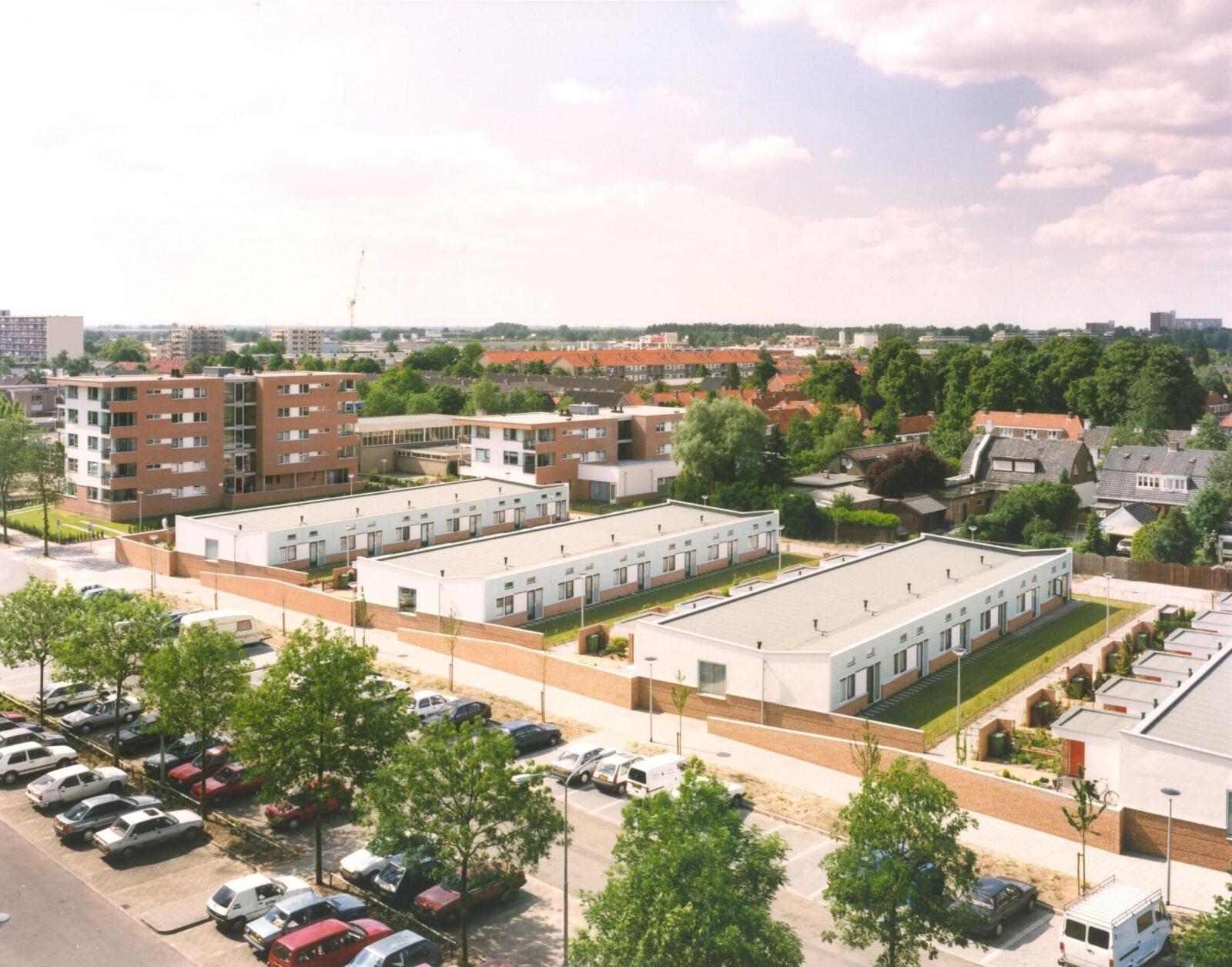 Het eerste ontwerp dat we in een plan van Quadrat met Roy gemaakt hebben was in Ede (1992). De invulling betrof ouderenwoningen in twee gestapelde blokken en vier stroken eenlaagse woningen. Het plan ligt iets verhoogd, op de overgang naar lager terrein, waardoor het een kleine enclave vormt. De beide gestapelde blokken markeren een voet- en fietspad van Oud Ede Zuid naar een latere nieuwbouwwijk. Tegelijk laat deze overgang van hoger naar lager een heel klein stapje zien van de landschappelijke overgang van de Veluwe naar de lager gelegen Rijn.